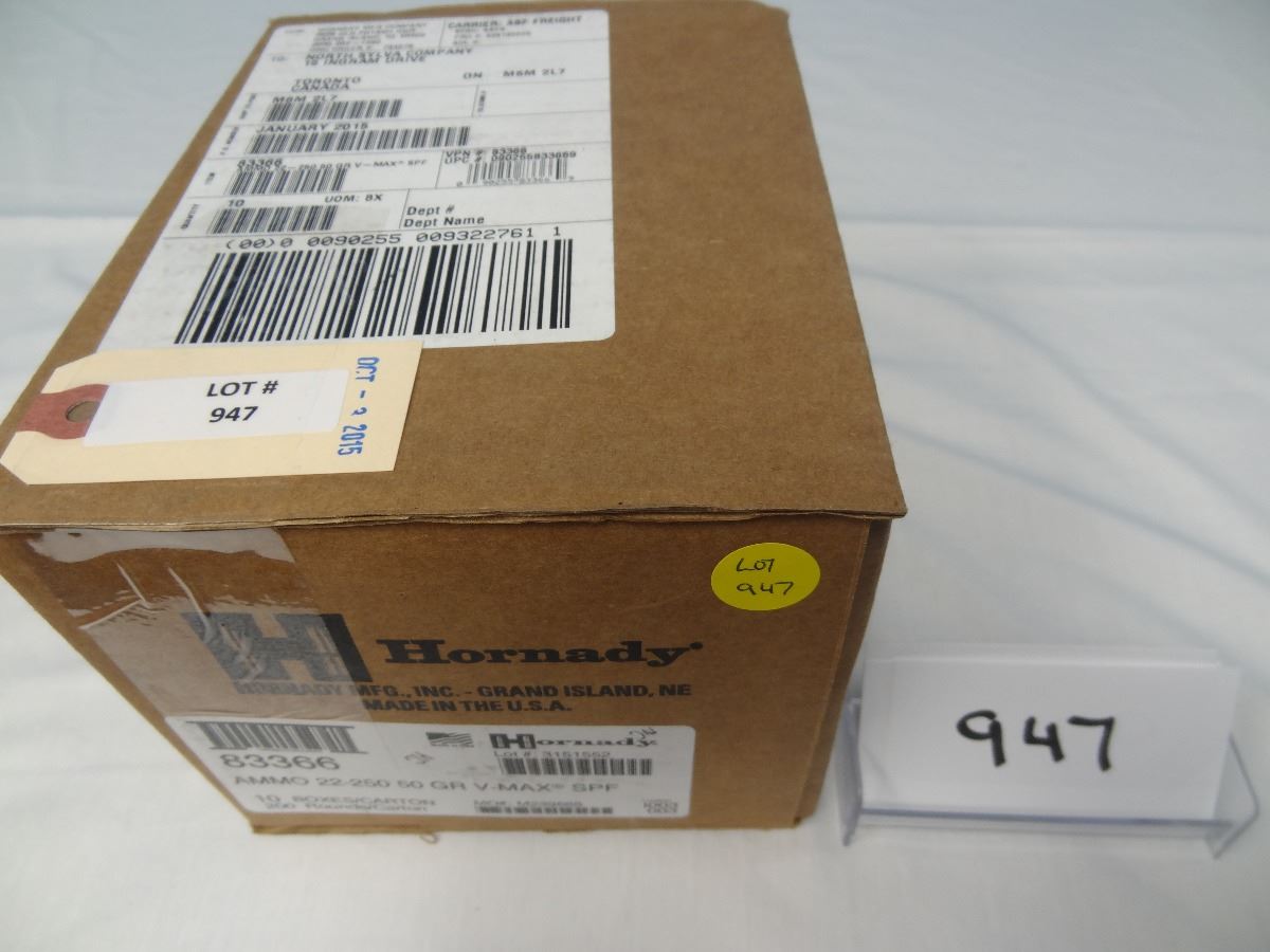 Lot 947 Hornady Mfg Inc, #83366, Ammo 22-250, 50g, Vmax, SPF, Case 10 box x 20 = 200 rounds