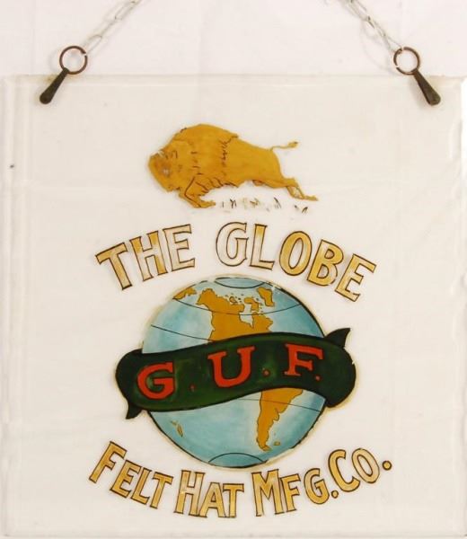Lot 58 The Globe Felt Hat Mfg. Co. Reverse Glass Sign
