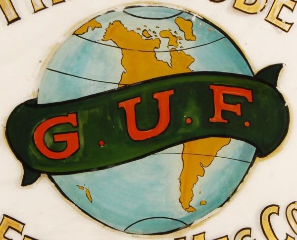 The Globe Felt Hat Mfg. Co. Reverse Painted Glass. 26" x 26"