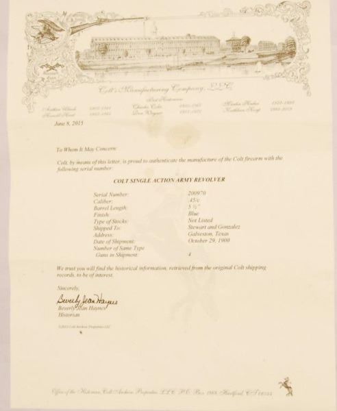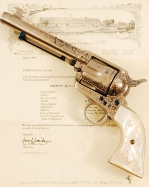 * With Colt factory letter. First gun shipped to Galveston after hurricane in 1900. 5-1/2" barrel.