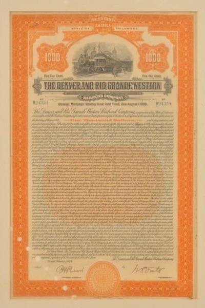 Lot 235 Denver & Rio Grande Railroad Framed Stocks