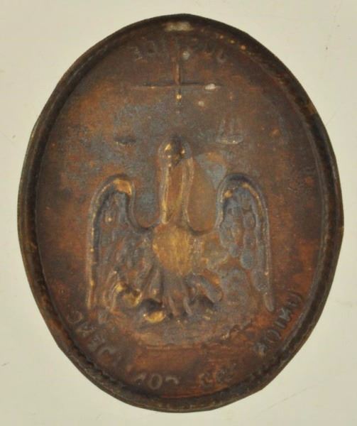 Louisiana Shoulder Belt Plate. Die struck brass, dark patina, no belt loops on reverse. Plate 297 on page 164 of Mullinex's Expanded Edition book "Confederate Belt Buckles & Plates". 2-1/4" x 2-3/4".