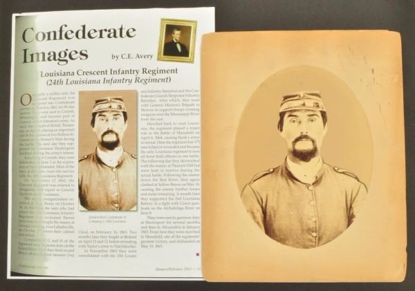 Soldier is wearing uniform of Louisiana Crescent Infantry. Comes with copy of Confederate Veterans Magazine showing same image. 8" x 10"