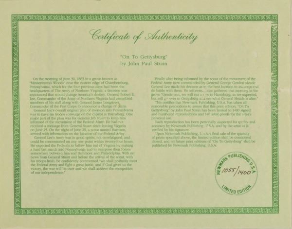 Lot 380 John P. Strain "On To Gettysburg" Civil War Print