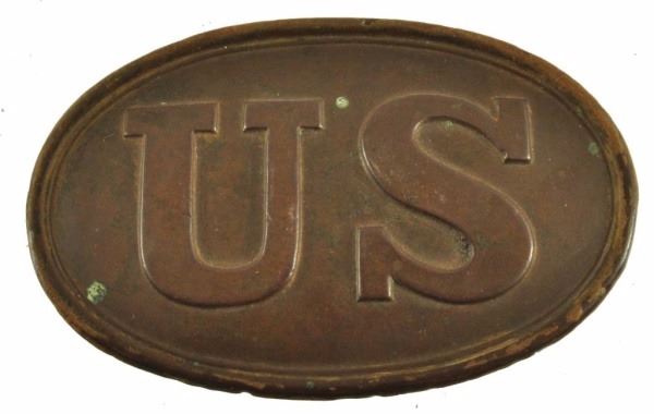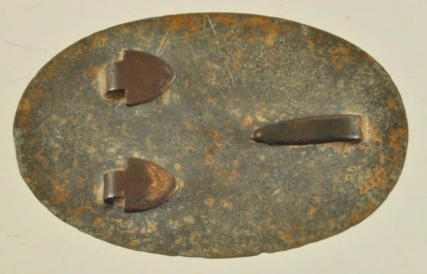 With arrow belt loops on reverse. Lead fill on back and has some corrosion. Many Rebs wore these upside down making the "US" a "SN" for Southern Nation.