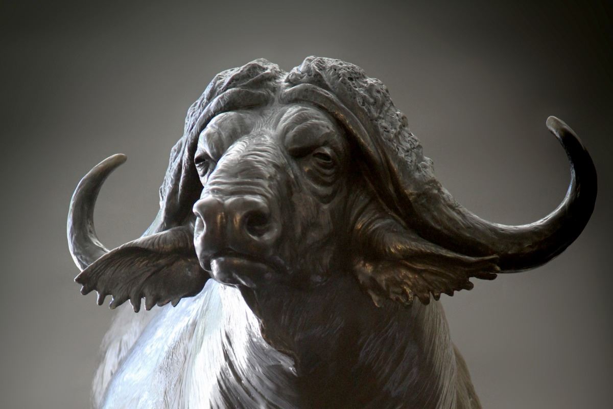 WELLS GALLERY: "Dagga Boy" - Bronze sculpture by Ronnie Wells mounted on a 14" black granite base, measures 18"x18". Limited edition #10 of 25. Ronnie Wells is dedicated to creating superb wildlife sculptures from miniature to monumental. The quality of Wells' work is evident by the numerous honors he has received. Ronnie Wells, 254-947-0311, 254-760-9112, PO Box 616, Salado, TX 76571, wellsgallery@aol.com, www.ronniewells.com. Booth #2607