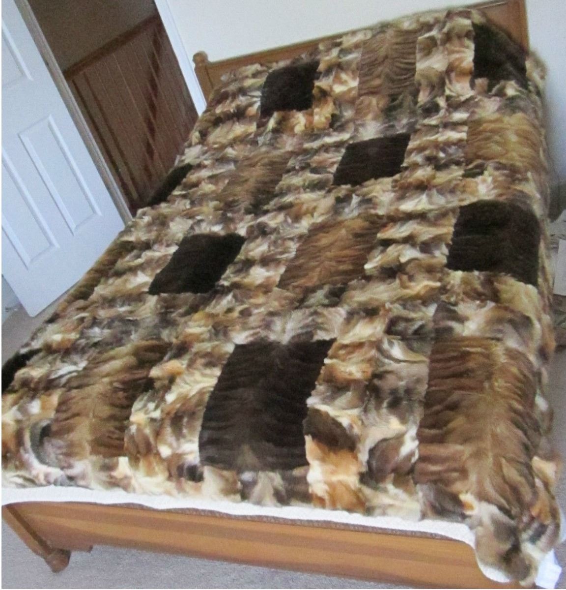 ALASKA FUR GALLERY: Indulge yourself with this luxurious, king-sized Russian sable blanket by the Alaska Fur Gallery - measures 70"x88". Each of the 16 rectangular sections measures 9"x12" and alternate in light/dark color, providing a beautiful contrast. Manuel Hernandez, 907-274-3877, 907-223-3678, Fax 907-272-1582, 428 W 4th Ave., Anchorage, AK 99501, info@akfurgallery.com, www.akfurgallery.com. Booth #3345