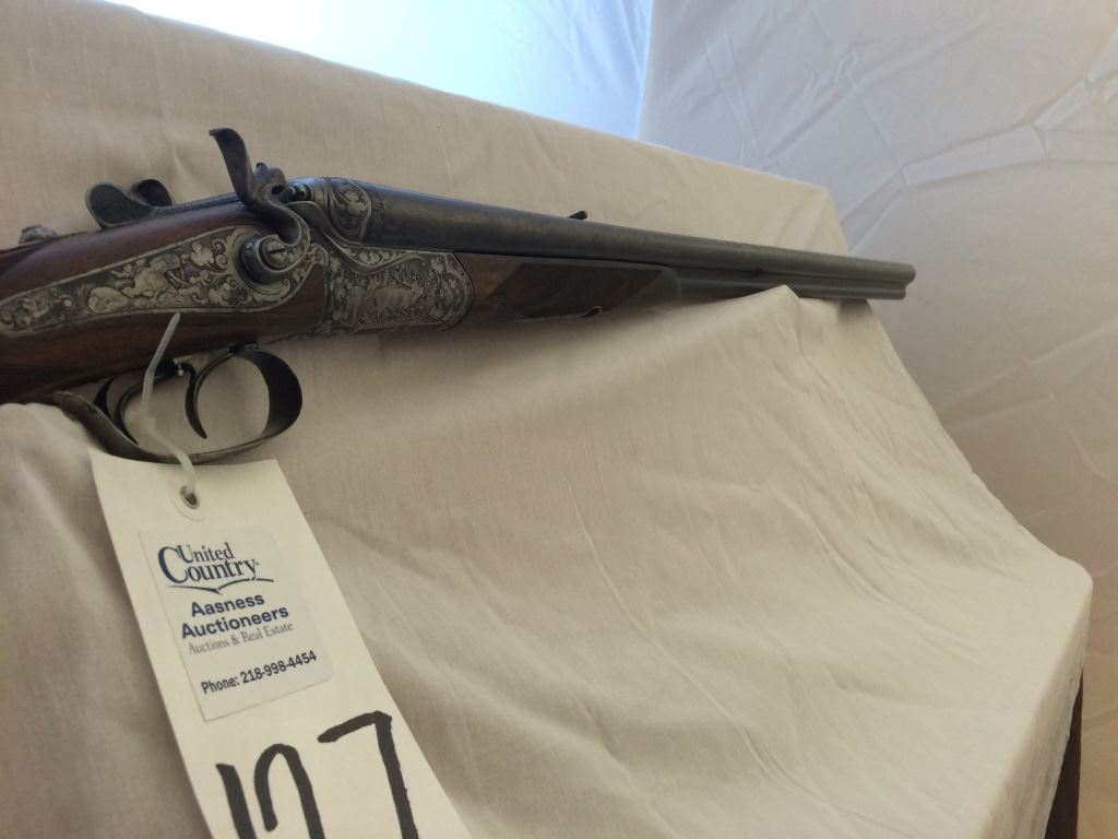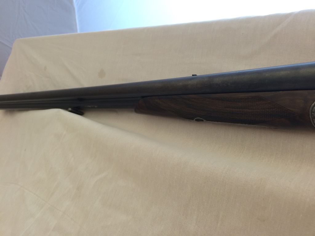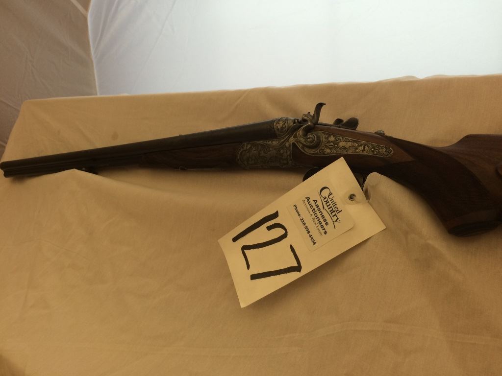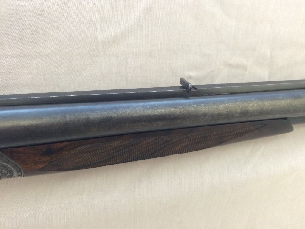 break action open hammer, fancy hi relief hunt scenes,side engraved high grade, cheek piece/pistol grip