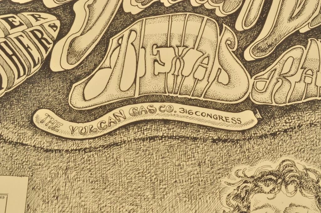 Vulcan Gas Company, Austin, TX. October 10, 1969. Artist: Jim Franklin. Linen backed. 20" x 25".