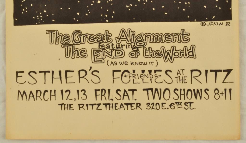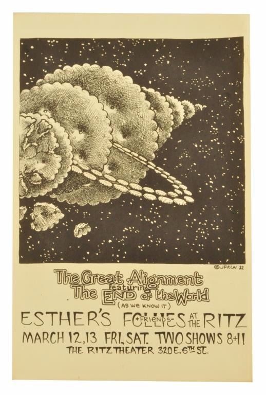 The Great Alignment of the Planets poster. Featuring Esther's Follies. The Ritz Theater, Austin, TX. March 12-13, 1982. Artist: Jim Franklin. 11" x 17".