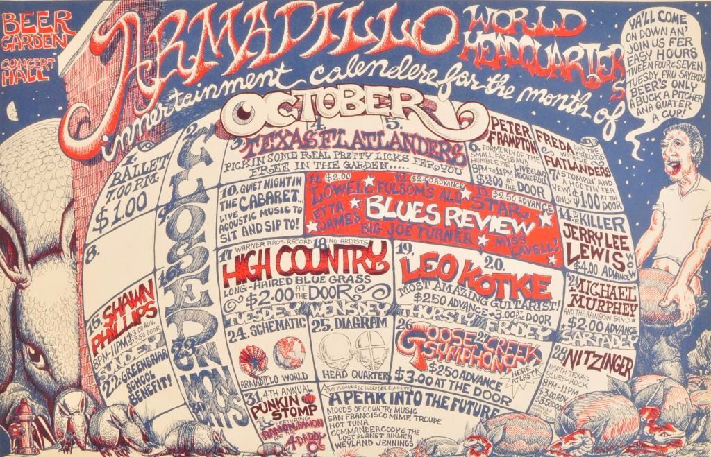 Lot 10 Armadillo World HQ Watermelon Calendar 1971