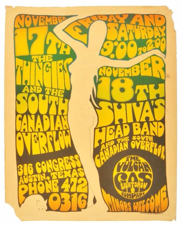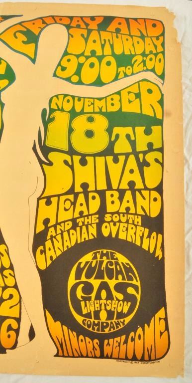 Vulcan Gas Company, Austin, TX. November 17-18, 1967. Artist: Gilbert Shelton. 22-1/2" x 28-1/2". VG #4. Corner damage.