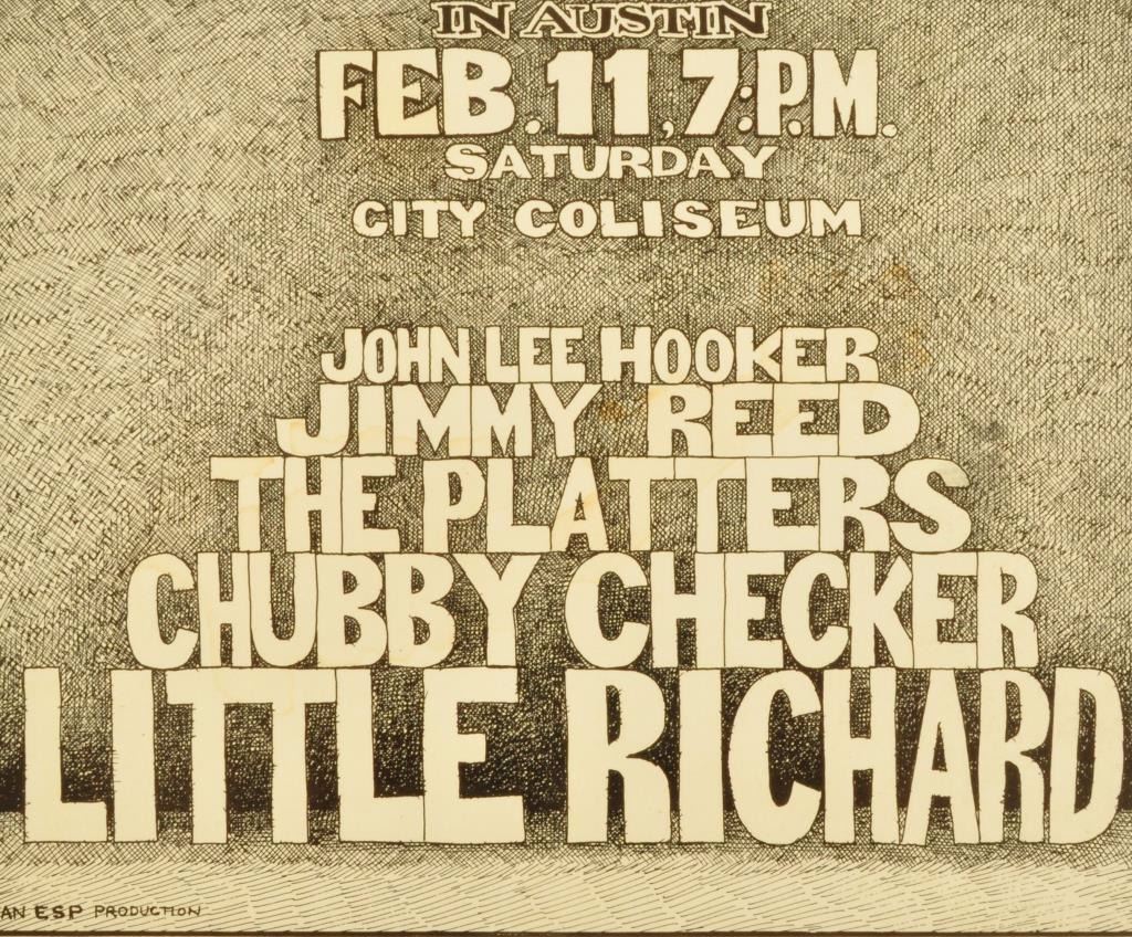 City Coliseum, Austin, TX. February 11, 1971. Artist: Jim Franklin. Linen backed. 11" x 17-1/2"