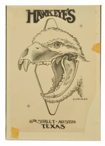 Lot 128 Jim Franklin Hawkeye's Austin, TX T-Shirt Proof