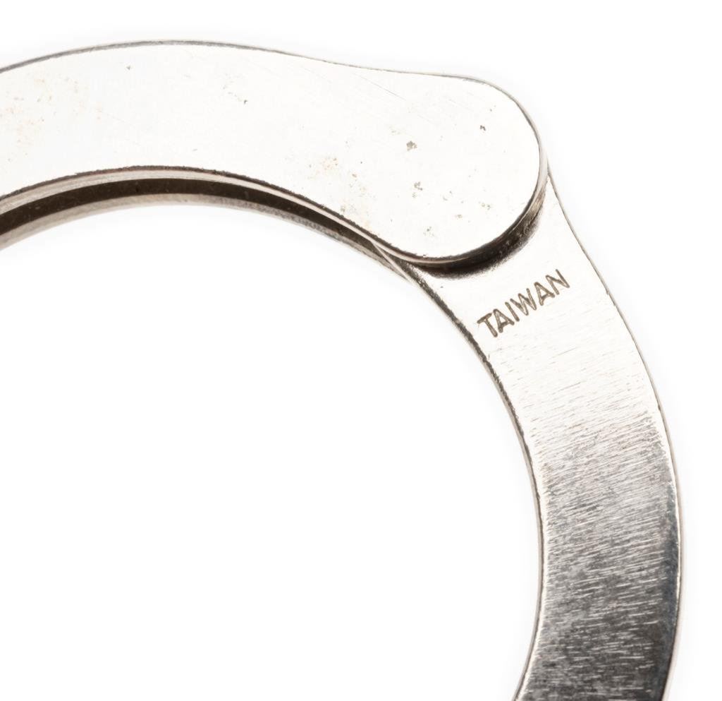 Lot 13 Pair of nickel plated handcuffs with 2 keys marked “Taiwan” in maroon colo