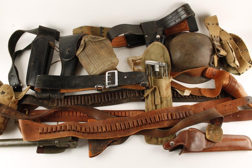 Lot 59 Bonanza collector’s lot including misc. U.S. military belts, pouches, 2 ca