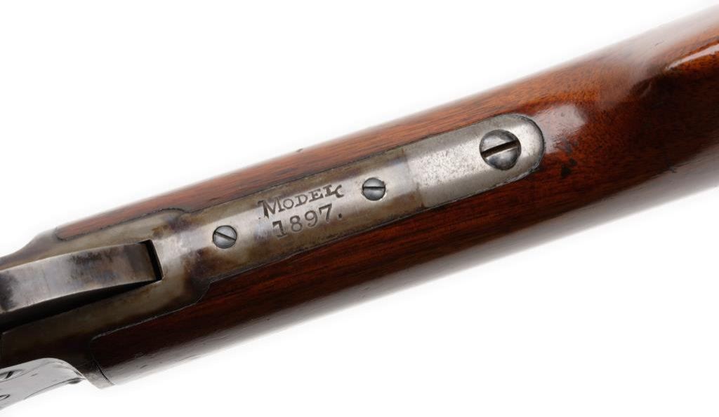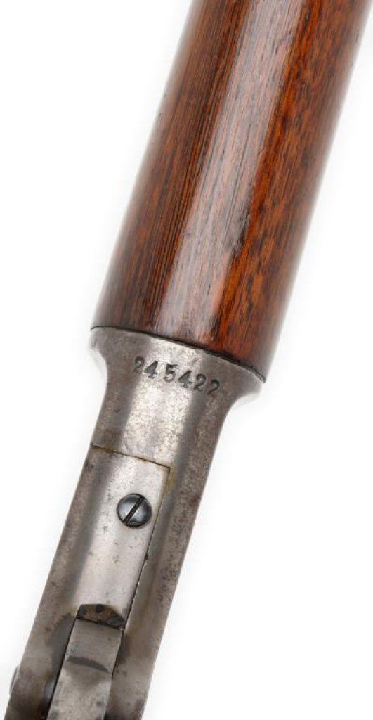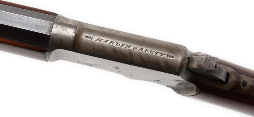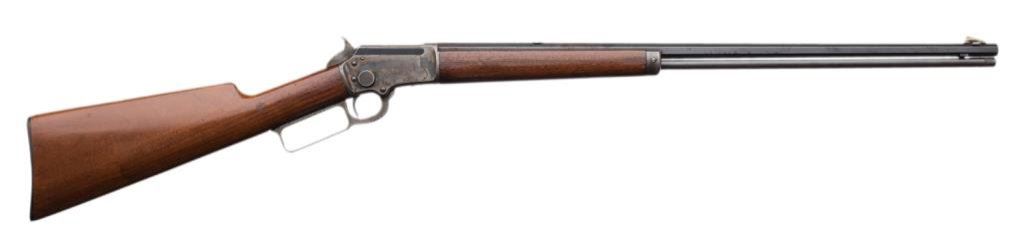 Marlin Model 1897 lever action takedown rifle, .22 caliber, 24” octagon barrel, S/N 245422, blued and casehardened finish, wood stocks in overall fine condition displaying the majority of its original blue and case colors, fine bore, crisp action and markings and overall fine wood with original factory hard rubber butt plate; some minor old mars to wood from storage. Est.: $600-$1,200.
