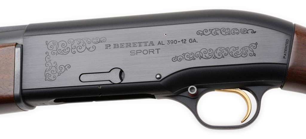 Beretta Model AL390 Sport semi-auto shotgun, 12 gauge, for 2-3/4” and 3” shot shells, 28” ventilated rib barrel, S/N X00635E, black finish, checkered wood stocks, Decelerator black hard rubber butt pad, gold trigger. This Beretta is in overall excellent condition displaying little use; accompanied by an instructional manual. Est.: $500-$750.