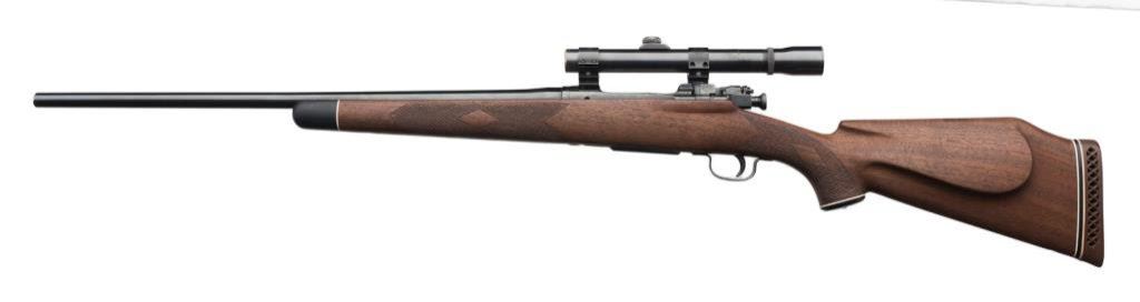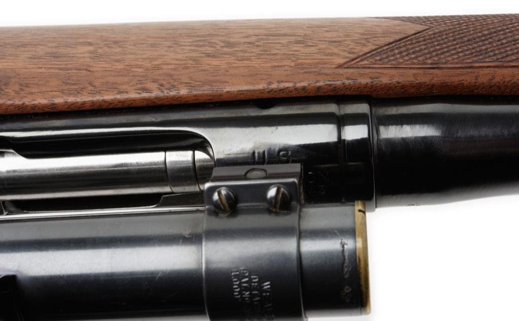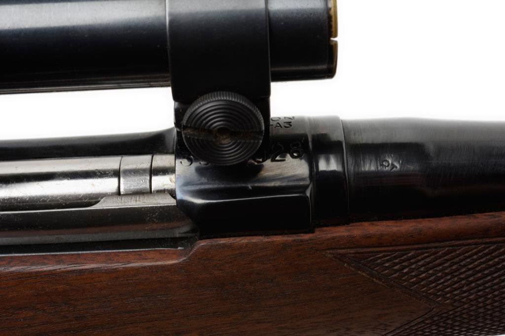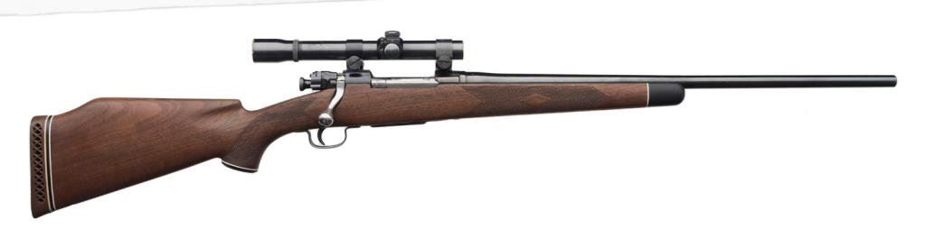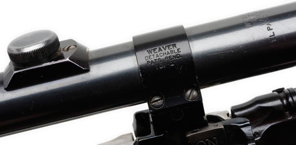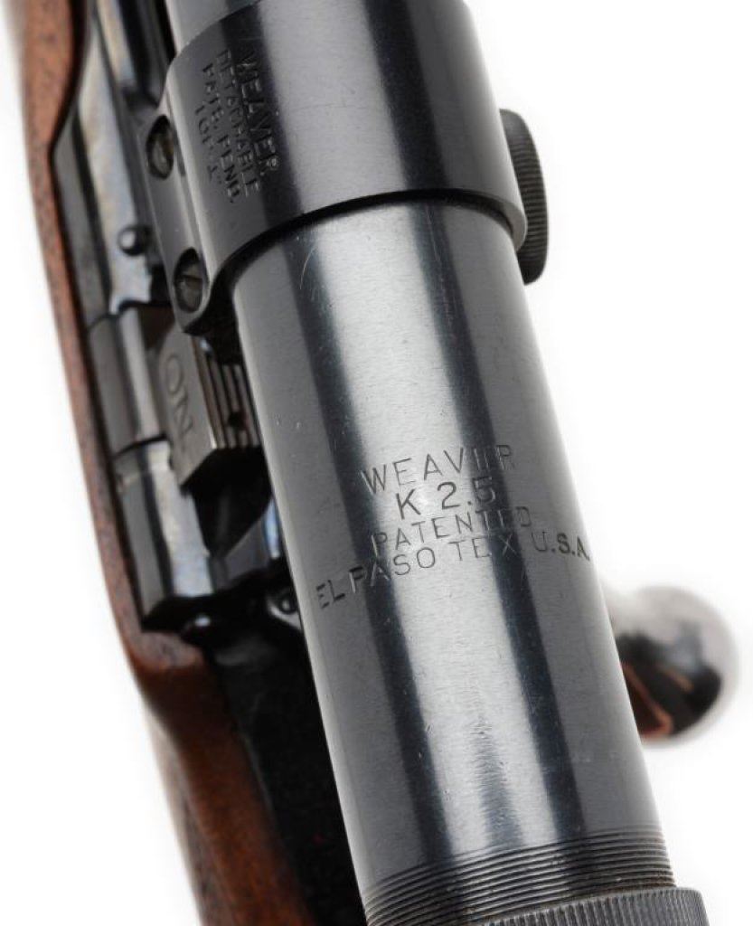 ++Sporterized Remington Model 03-A3 bolt action rifle, .30-06 caliber, 23” round barrel, S/N 3508028, re-blued finish, custom checkered wood stock with hard rubber butt pad; mounted with a Weaver K-2.5 scope displaying fine optics. This rifle is in overall good condition as customized; crisp action, good markings and fair to good bore. The stock is very good with minor storage scratches. The sling swivel bases are both missing. Est.: $300-$500.
