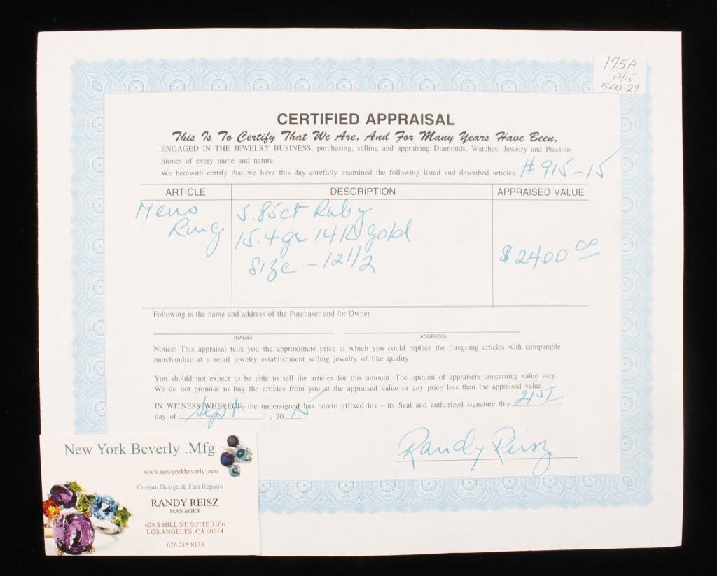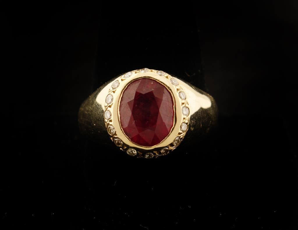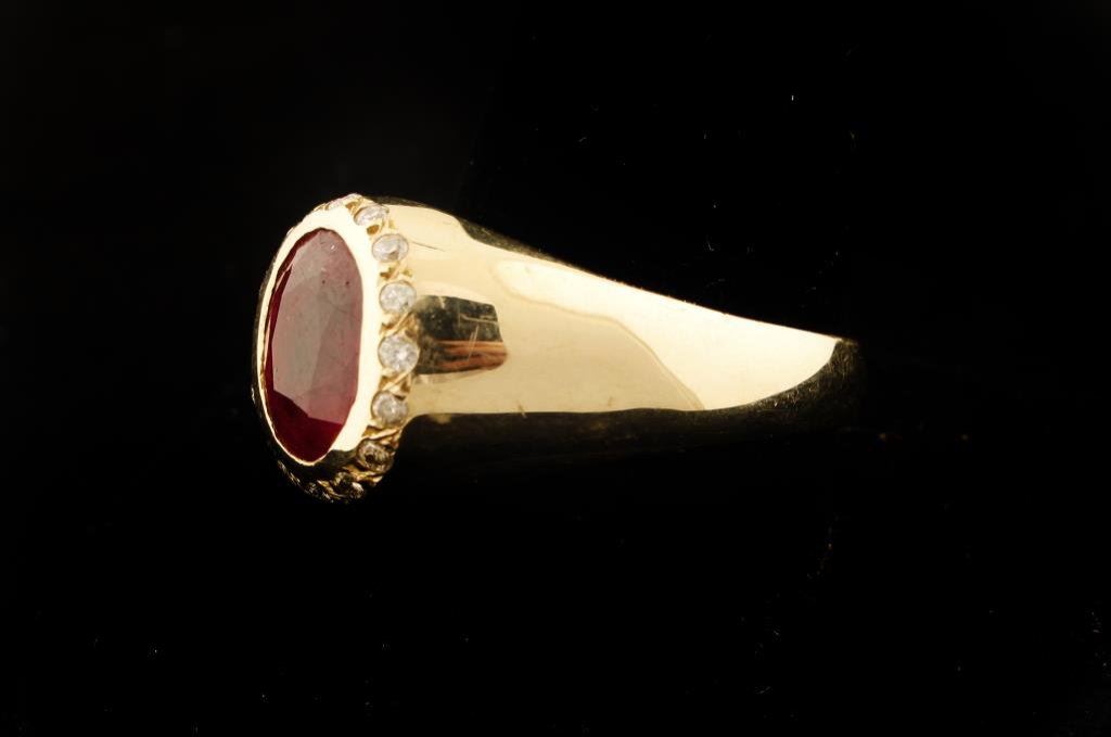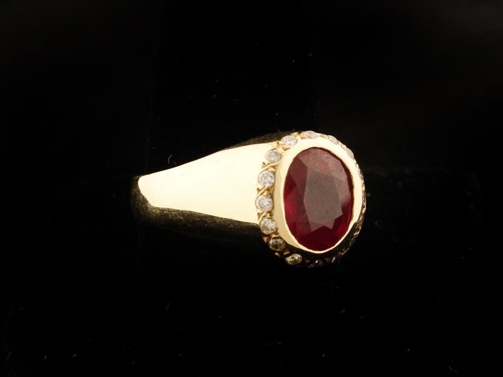 Lot 175a Mens 5.85 carat faceted Ruby ring set in 15.4 gr 14k gold, size 12 1/2. Es
