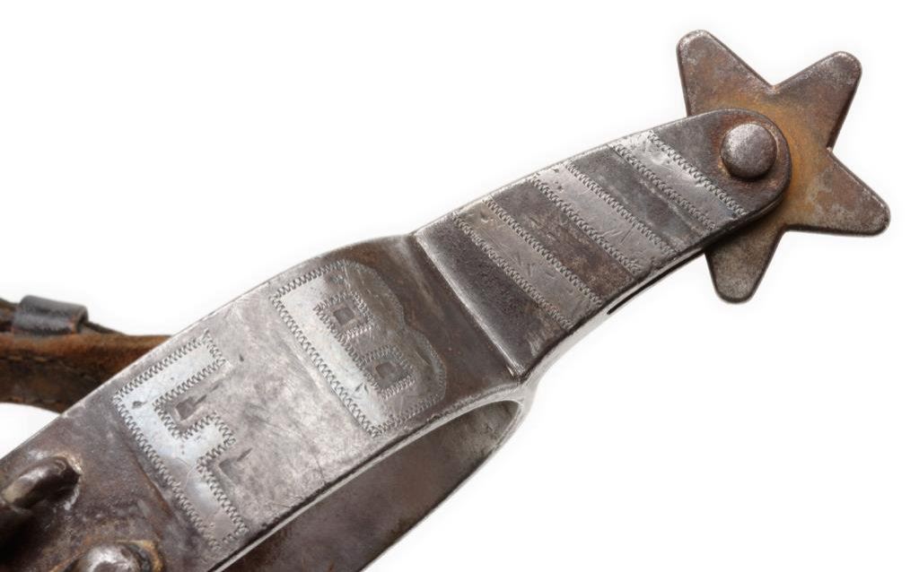 Lot 189 Pair of heavy spurs marked “CROCKETT” on one spur with silver overlays and