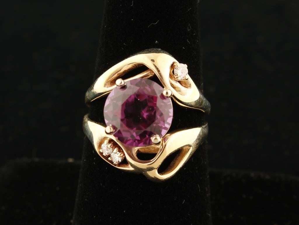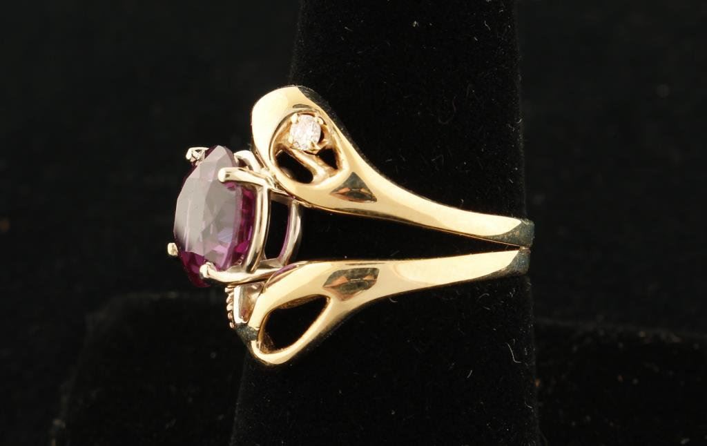 Artistic Alexandrite and Diamond ring created Alexandrite weighing 5.00 carats with 3 accent diamonds set in 14 karat yellow gold. Retail: $1,000-$1,500. Est.: $600-$900.