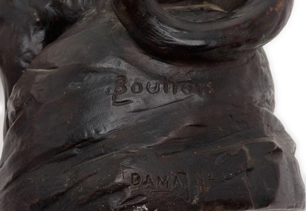 Bronze entitled “Stalking Cougar” by Joseph L. Boulton (1896-1981), signed in base and foundry marked “DAMA”; approximately 9” in height, 11” long and 6” wide, ca 1930 with fine patina. Est.: $750-$1,500.