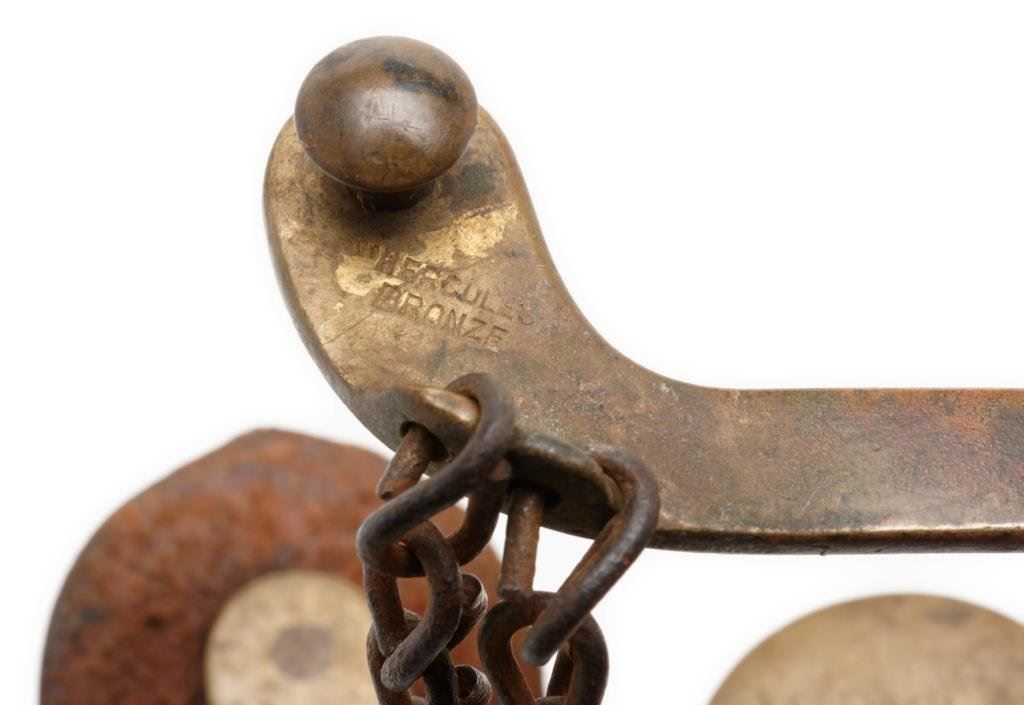Lot 309 Pair of bronze spurs marked “HERCULES BRONZE” ; 1-3/4” 10 point rowels, ra