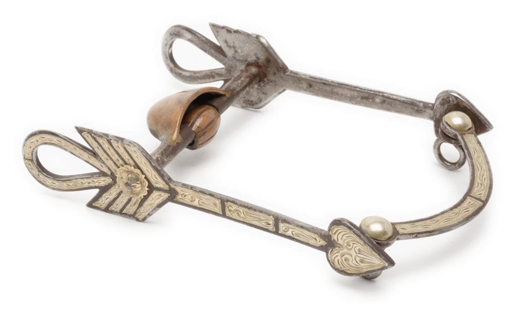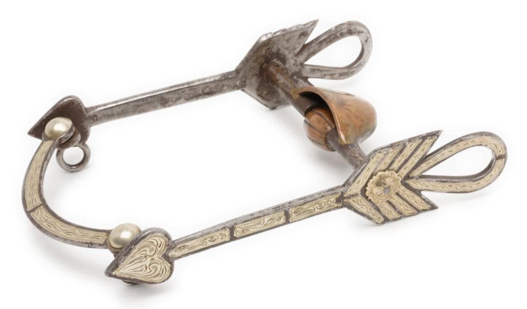 Beautiful silver engraved and overlay bit in the shape of arrows with hearts at the arrowheads; approx. 9-1/2” long and 5-1/2” wide, no maker’s marks visible, in overall very good condition. Est.: $400-$800.