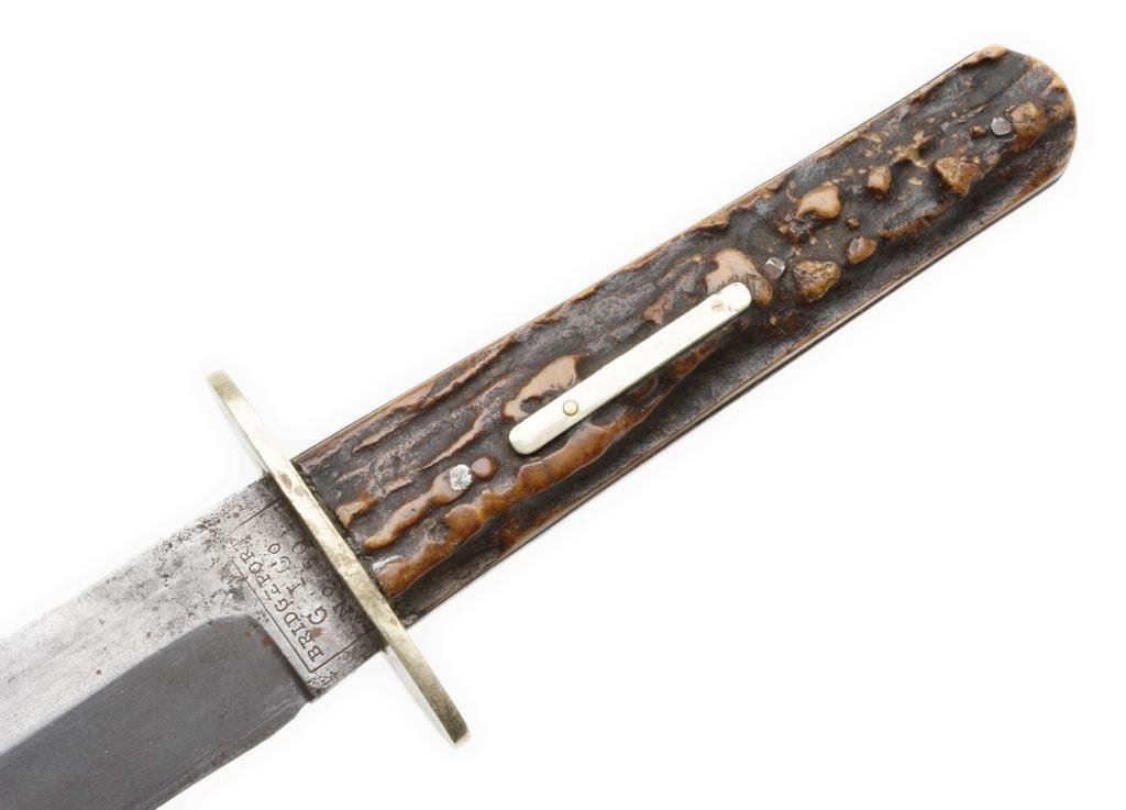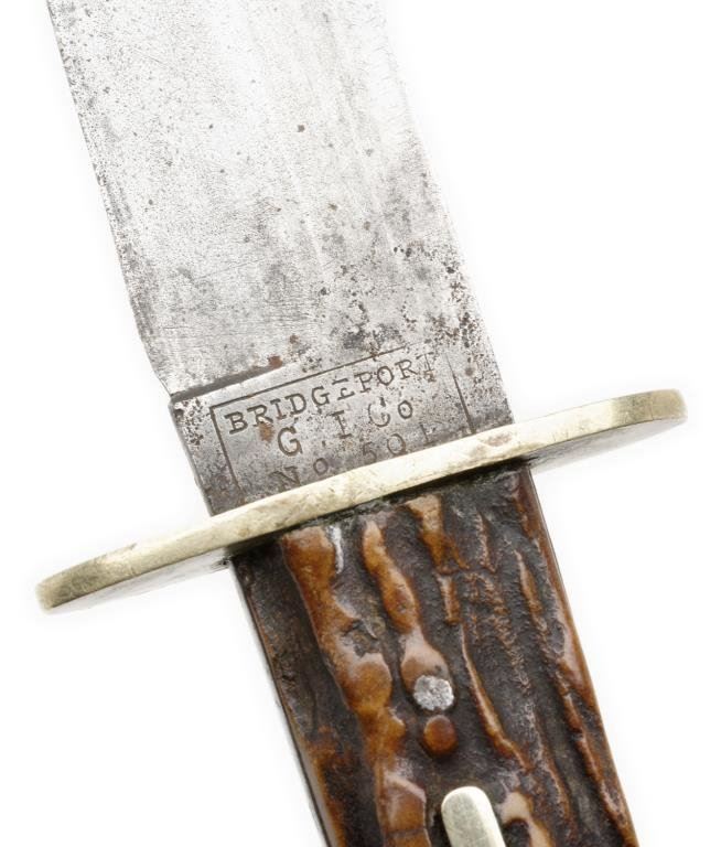 Lot 352 Bridgeport Gun and Implement Co.-marked spear point Bowie knife with stag