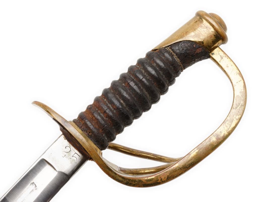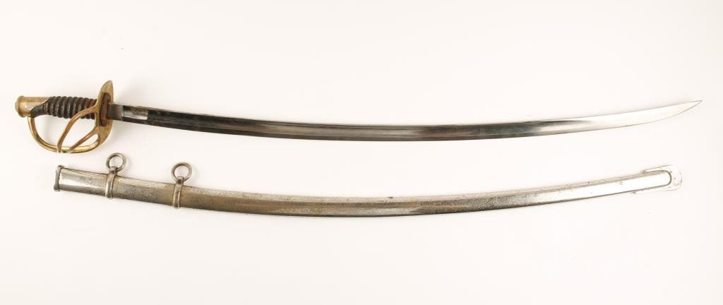 Lot 386 Model 1860 Cavalry Officer’s saber and metal scabbard base of blade on one