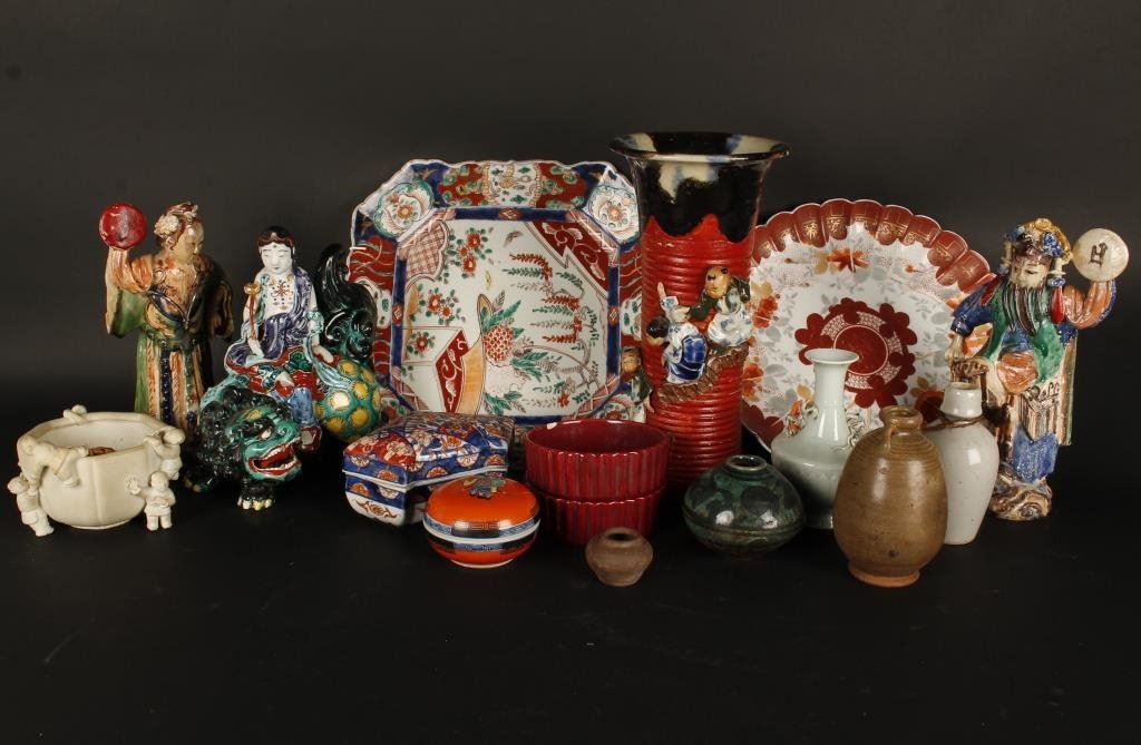 Oriental lot from an old collector; porcelains of various ages; Japan and China; 14 pieces. Est.: $200-$400.