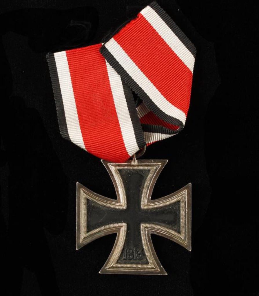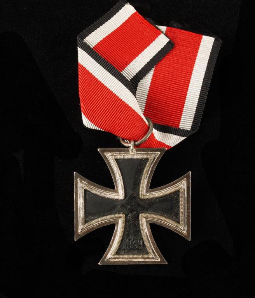 1939 German Iron Cross with ribbon in overall very good + condition. Est.: $100-$200.