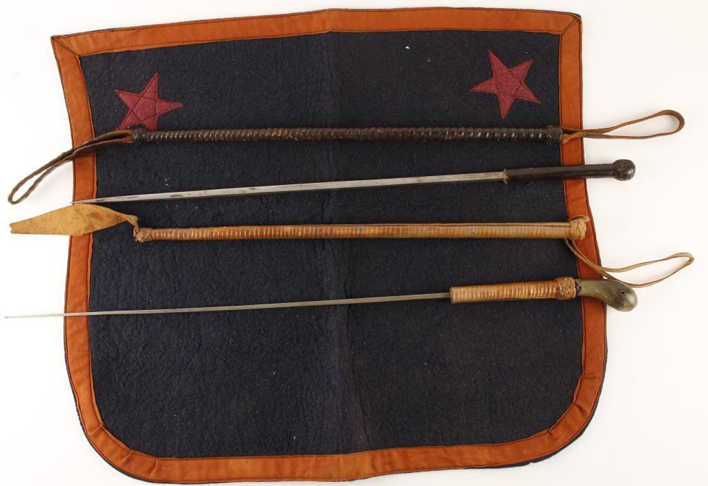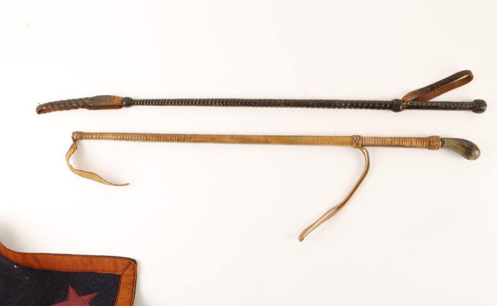Lot of 2 riding crops and a child’s saddle blanket with Texas Stars. Est.: $200-$400.