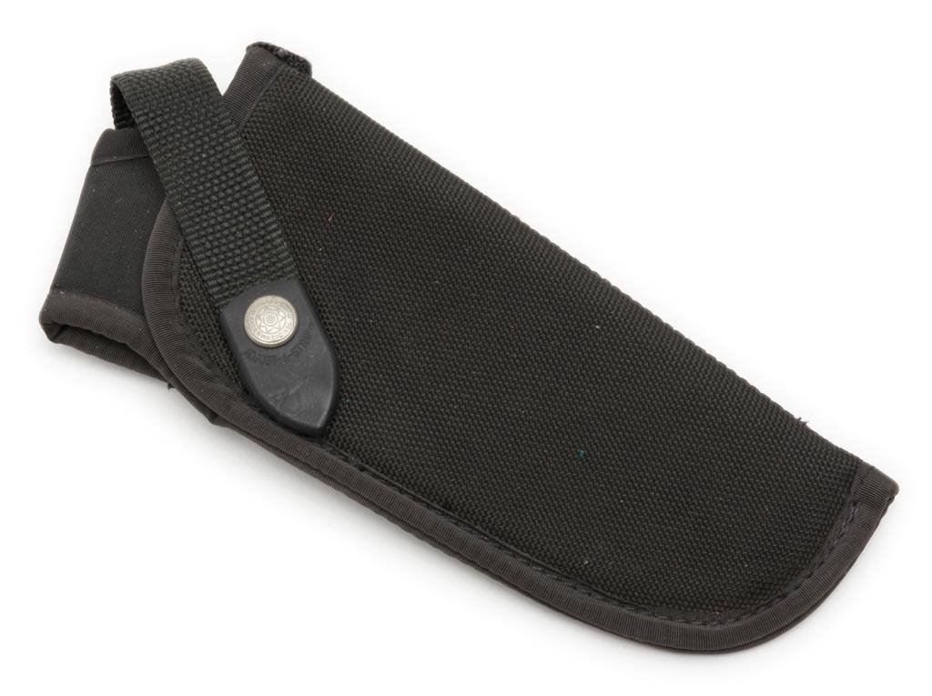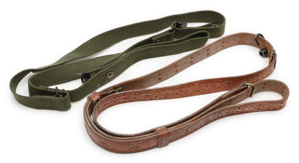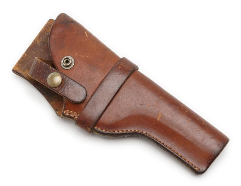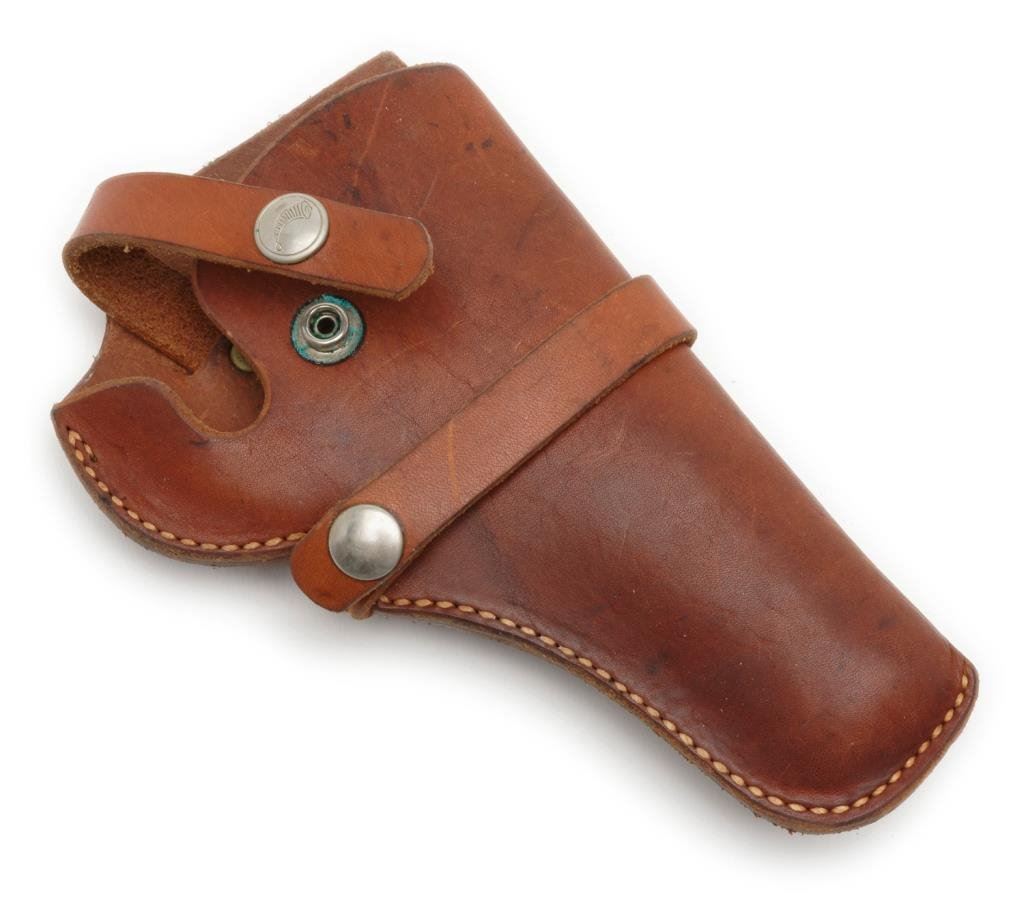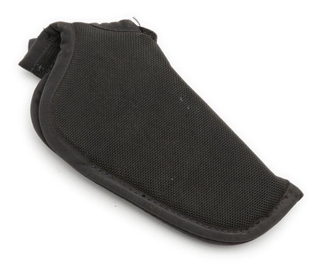 Lot of 9 misc. leather and nylon holsters for revolvers and semi-auto pistols by makers Bianchi, Safariland, Hunter, Lawrence, etc. Also a Hunter cartridge belt, leather sling, a pair of shooting gloves, ear protectors, etc. Est.: $150-$300.