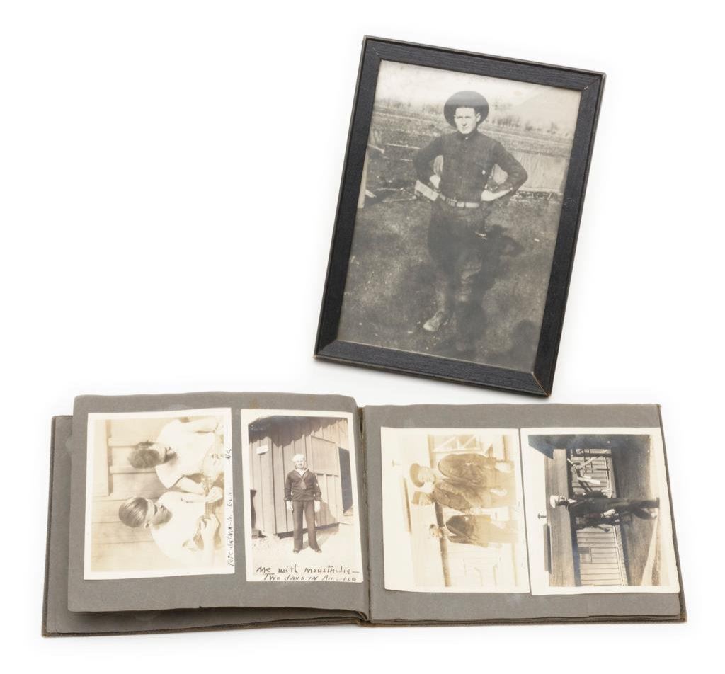 Lot 473a Photo album and framed photo of WW I veteran Eugene M. Lewan in uniform wi