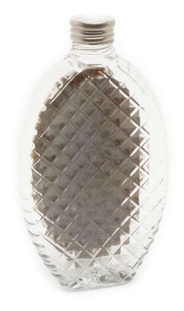 Lot 484 Glass flask with metal cap with gold reverse painted label: “Merry Christm