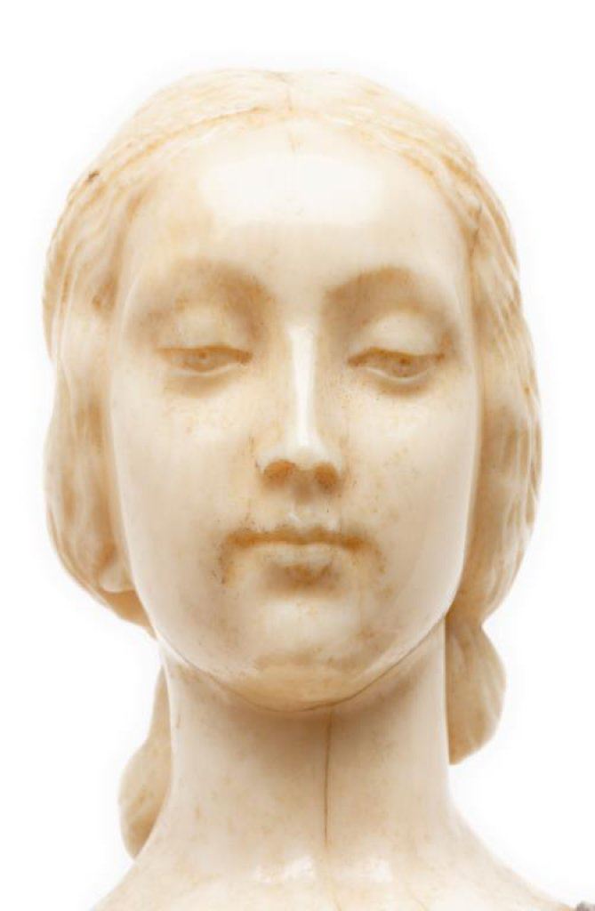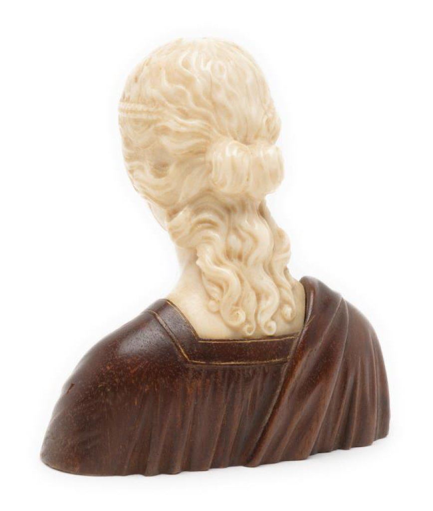 Lot 490 Old ivory and wood carving of medieval woman, approximately 4.5” in height