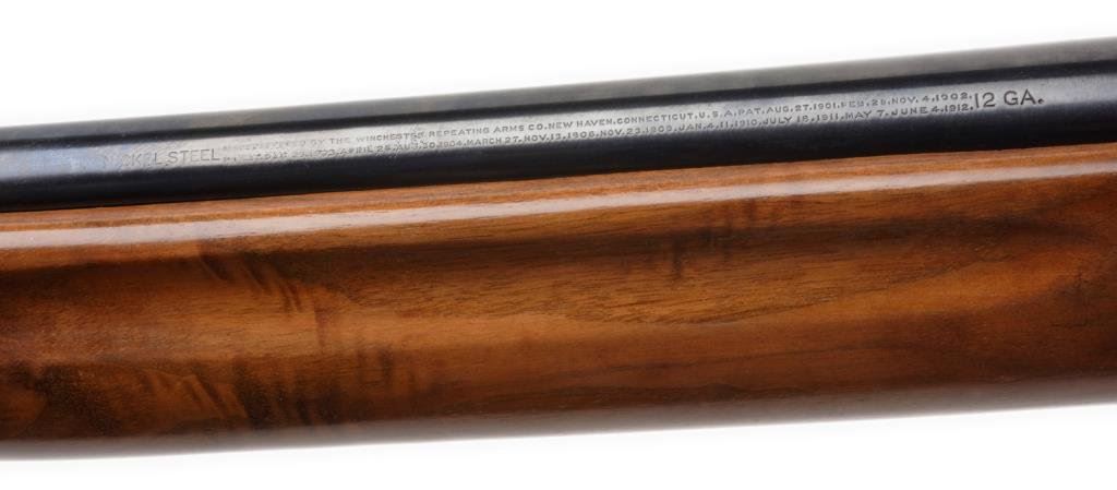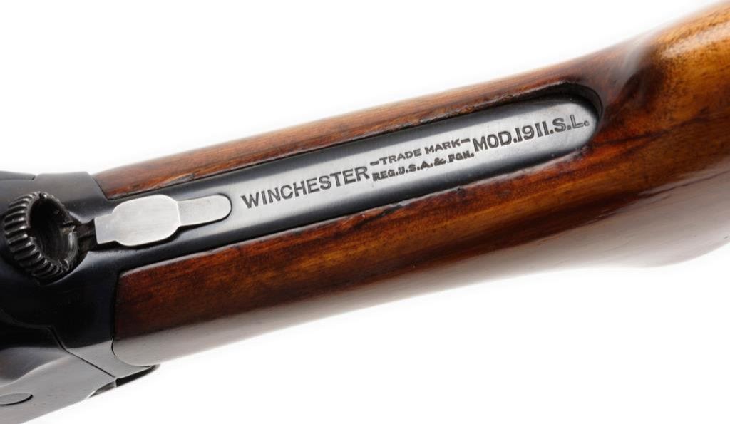 **Winchester Model 1911 Self Loader shotgun, 12 gauge, full choke, 28” barrel, S/N A71492, old re-blued finish, very good to fine bore, crisp action, good markings and good wood showing an old refinish. Est.: $200-$400.