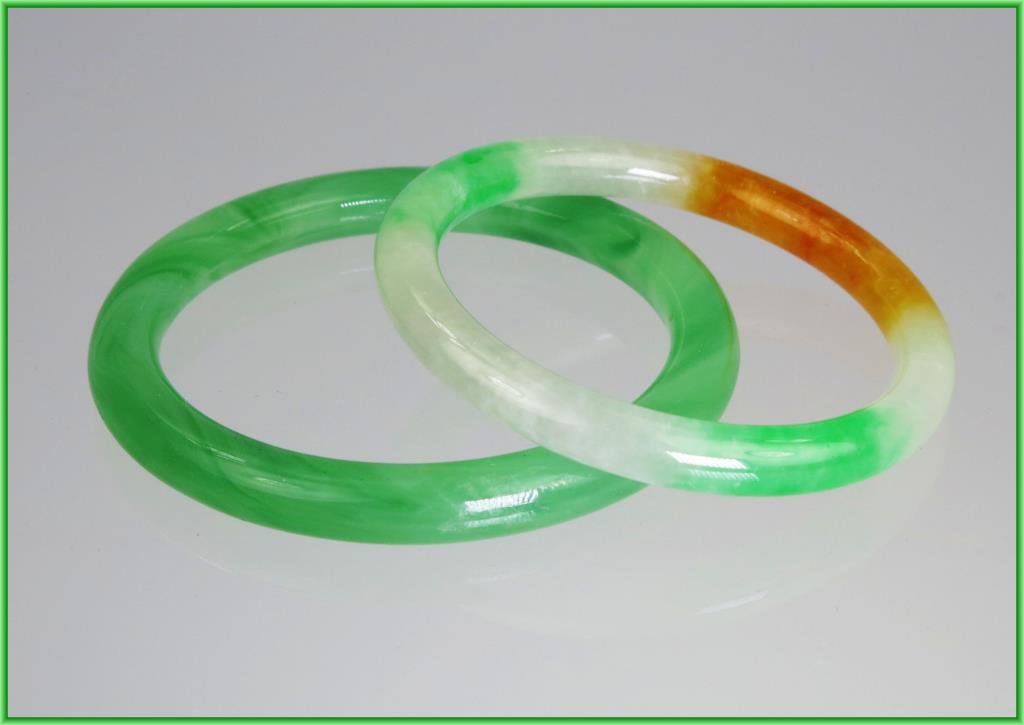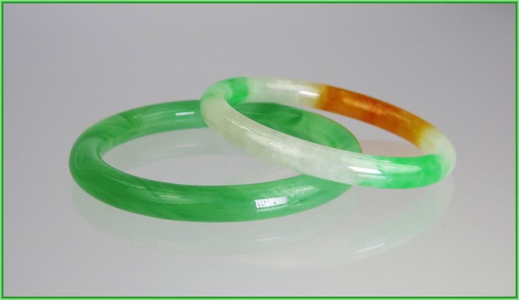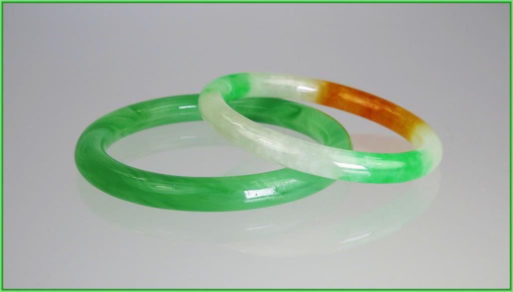 Lot 515 2 Beautiful Jade Bangle Bracelets one with apple green coloring and one wi