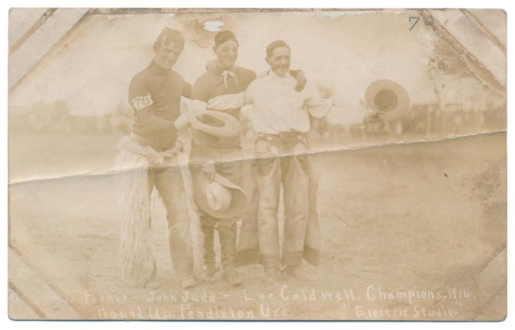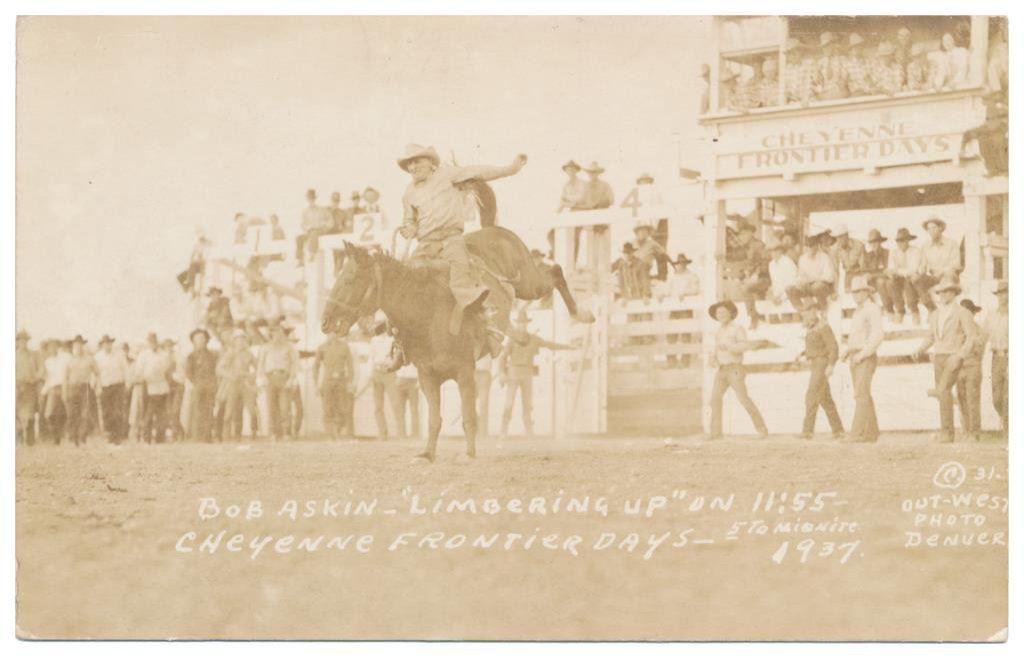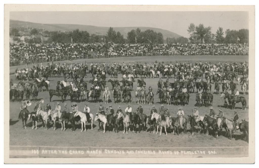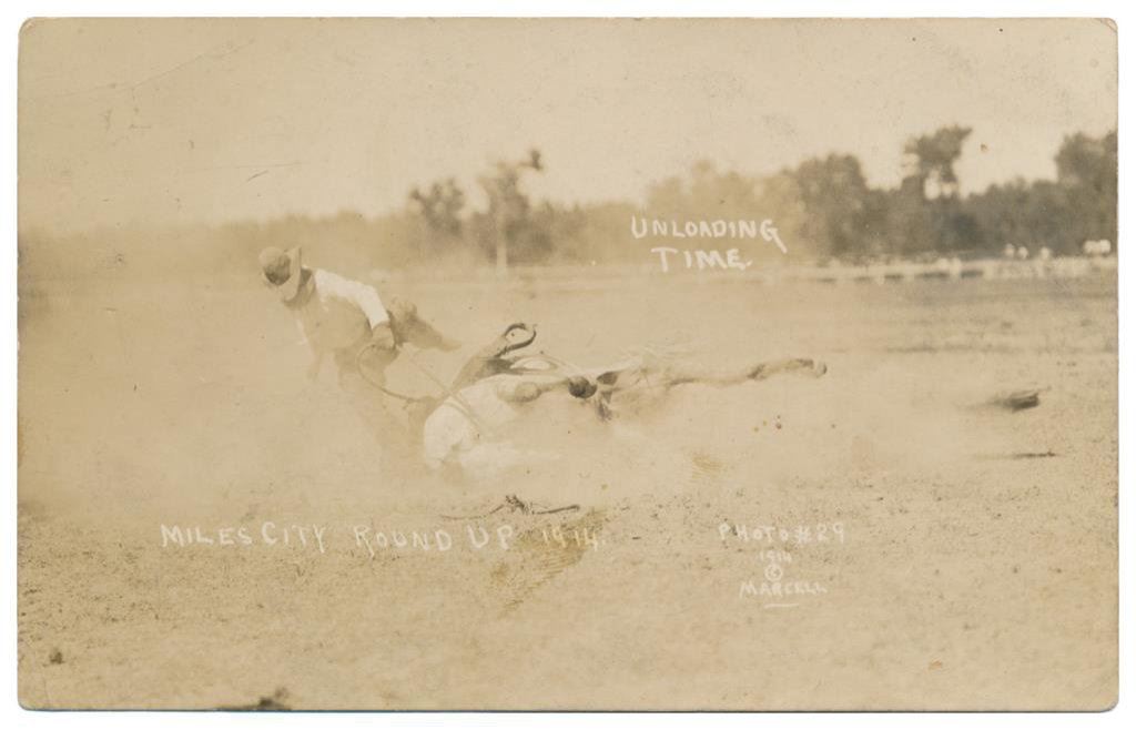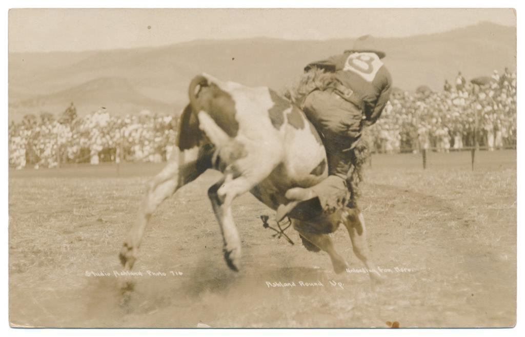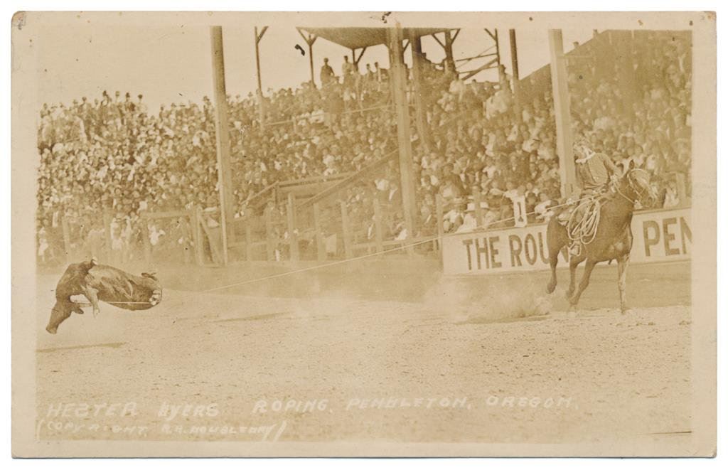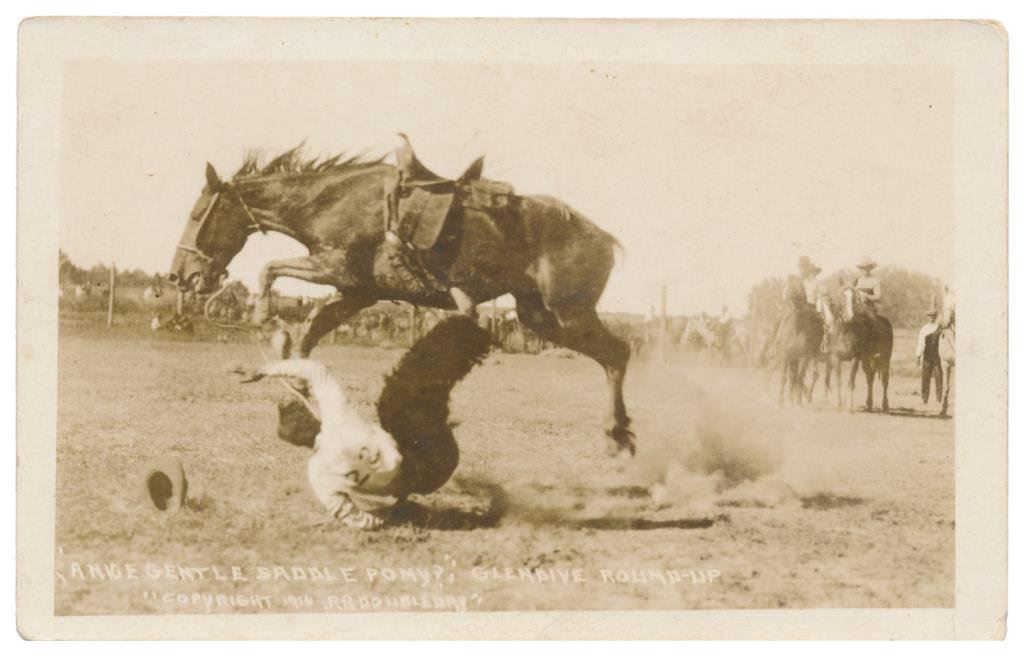 Bonanza lot of 22 early Rodeo-related photo postcards including ones identified to the Pendleton Round-Up; Miles City Round-Up (1914); Cheyenne Frontier Days (1937); Calgary Stampede; Guthrie, Oklahoma Rodeo; Glendive, MT. Round-Up; Ashland Round-Up and postcards identifying early star riders like Henry Warren, Ed Mc Carthy, Jackson Sundown, Bob Hall and Rufus Rollen. A great grouping of early Western Rodeo ephemera! Est.: $150-$300.