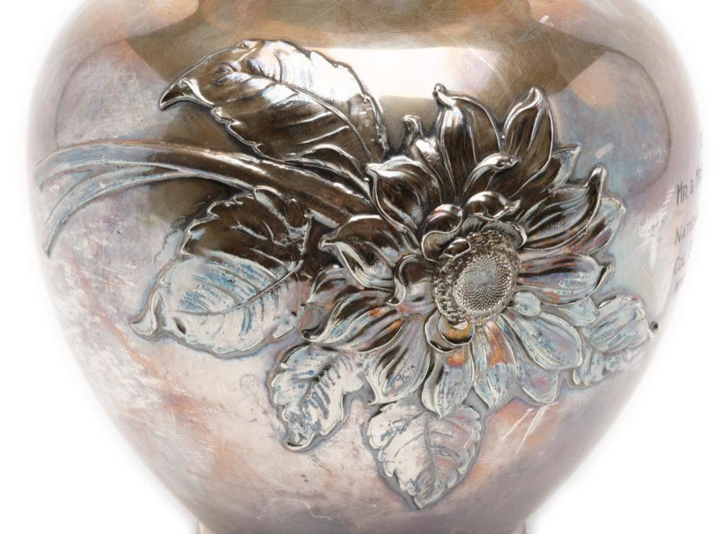 Lot 560 Striking sterling silver vase by Reed & Barton with inscription: “TO COMR