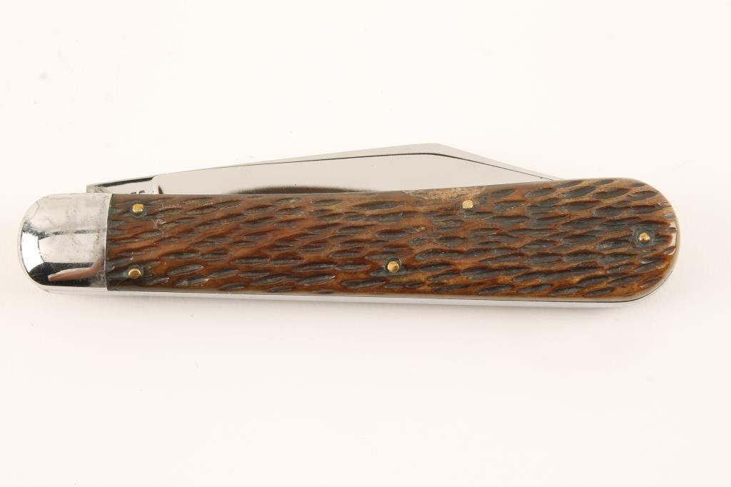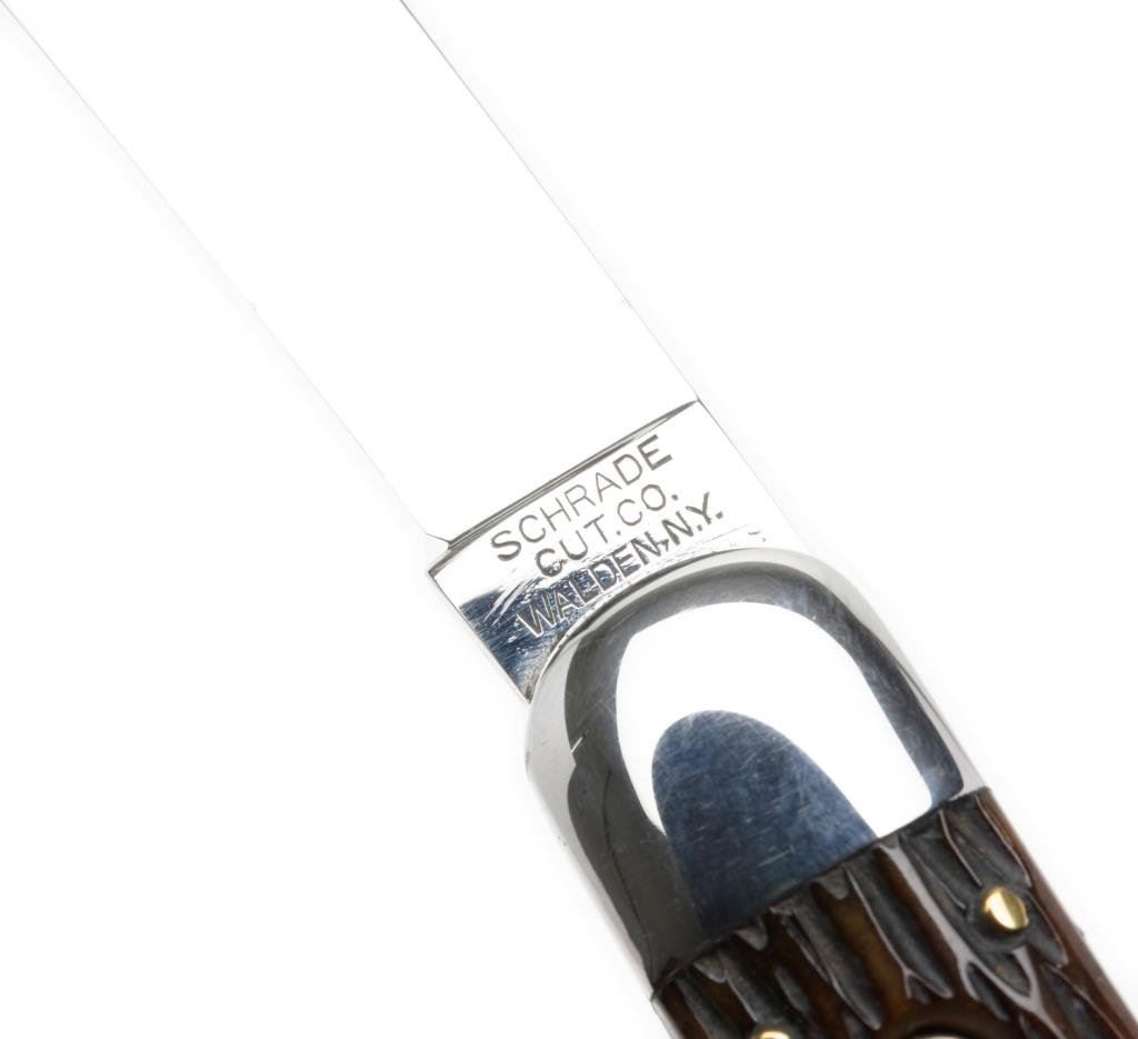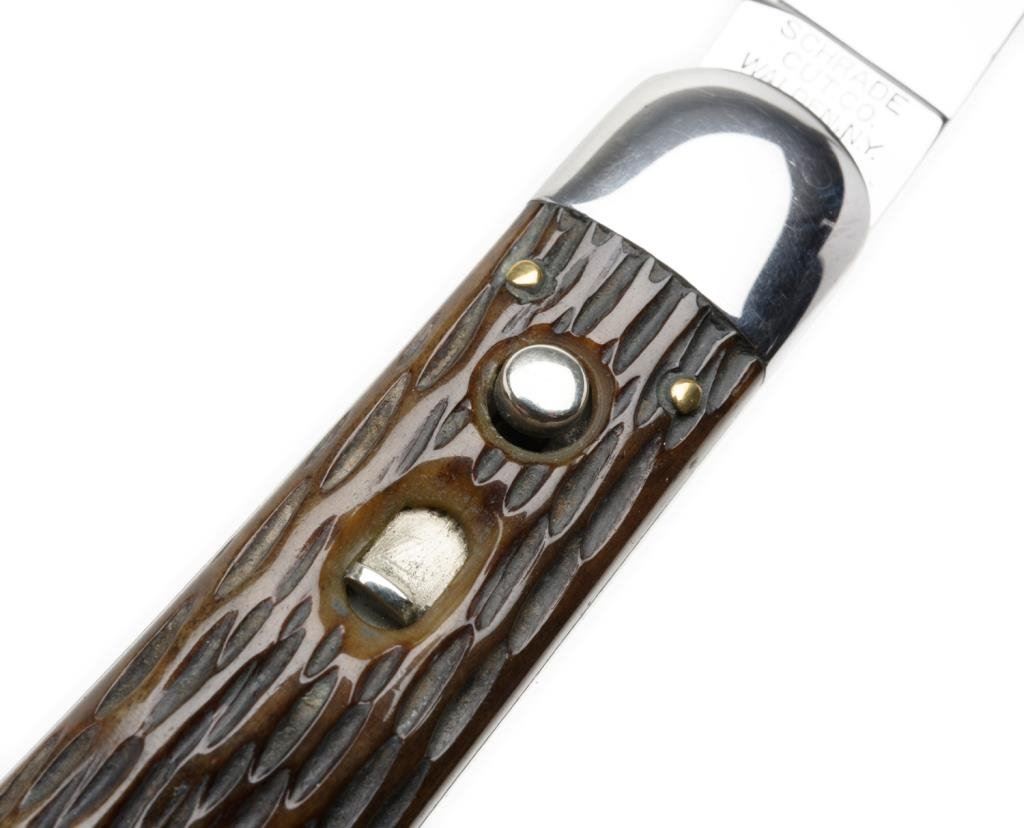 Lot 572 Rare Shrade Cutlery Co. mechanical pocket knife with stag slabs, approxima