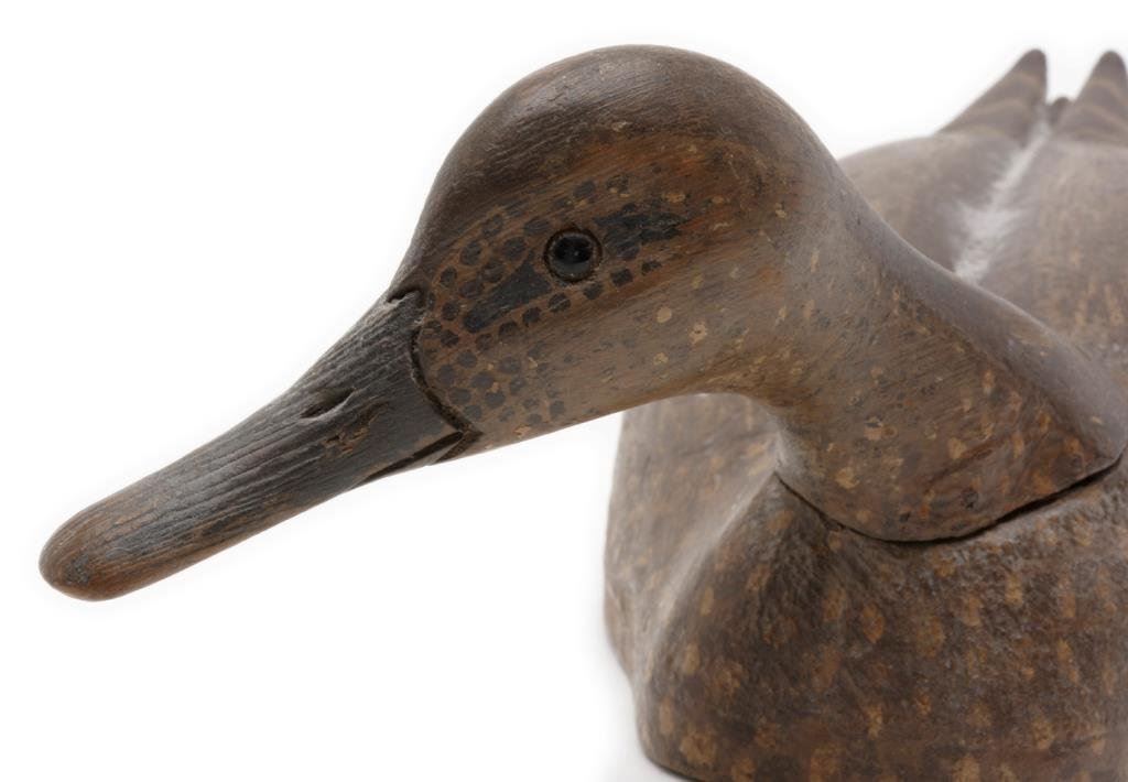 Lot 575 Old carved wood duck decoy, approx. 16” x 6” x 4”, showing what appears to