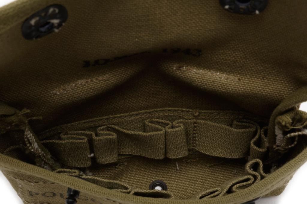 Lot 581 WW II era U.S. olive green woven pouch for shotgun ammunition marked “J.Q.