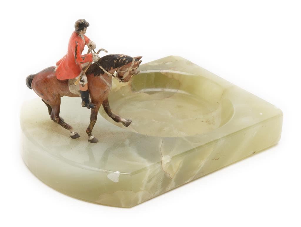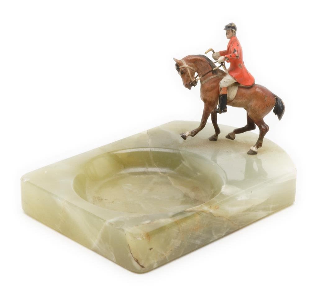 Lot 584 Stone ashtray with bronze horse and rider ready for the fox hunt. Est.: