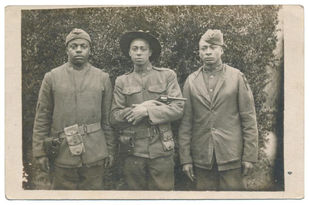 Lot of 10 misc. military cabinet photos and postcards including Brady photos of 2 West Pointers; James Graham, 13th Inf., Leavenworth, Camp Crook and 2nd Cav. Kansas and Colorado, died 1868. Also Edgar C. Bowen, 30th Inf. Ft. Sedgwick, Ft. Russell, Fort Fred Steele (UPRR escort) ; 11th Inf. Ft. Richardson, (Texas Pacific RR escort); captured a band of Comanches, Elk Creek, I.T., Ft. Sill and Cheyenne Agency assignment, 1876-78 (retired June 7, 1879); 4 photos of unidentified soldiers in uniform; a cabinet photo of Lt. Ewight (U.S. Engineers); a postcard showing Squad Room of Troop ā€œGā€ 6th Cav. and 2 scarce postcards of WW I era African-American soldiers in uniform, one holding a Colt Model 1917 DA revolver. Est.: $175-$350.