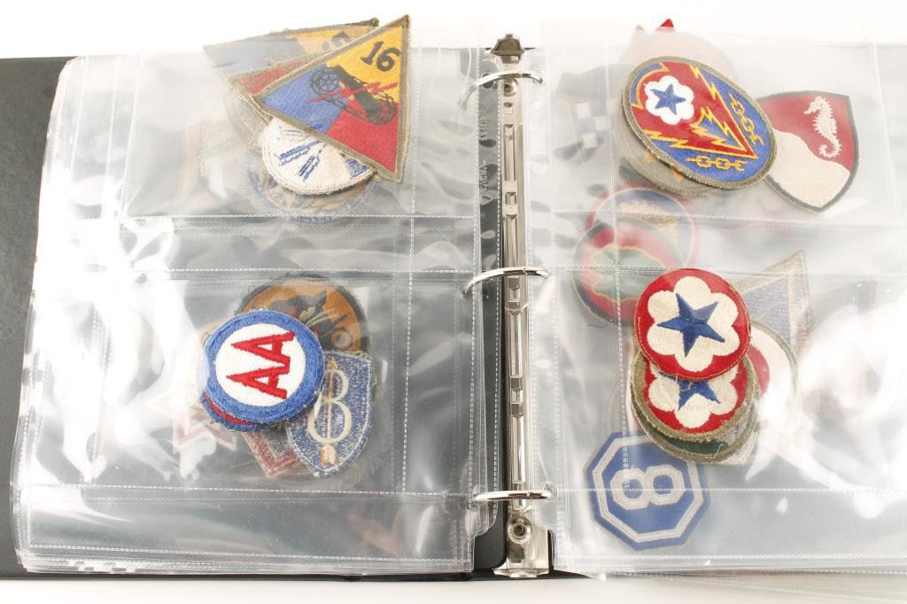 Lot of approximately 100 U.S. military patches in protective sheets and contained in a 3-ring binder ranging from WW II to Vietnam; some rare, most in good or better condition; a mini collection in one place! Est.: $50-$100.