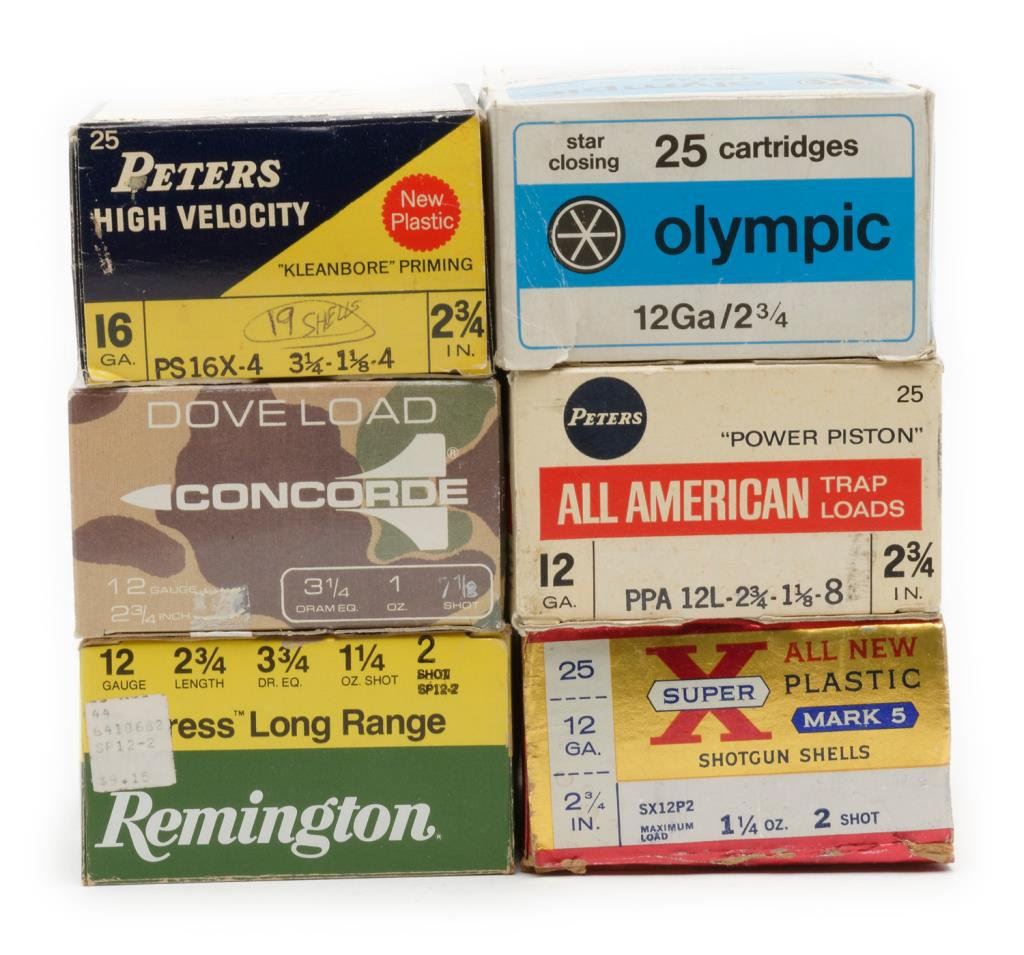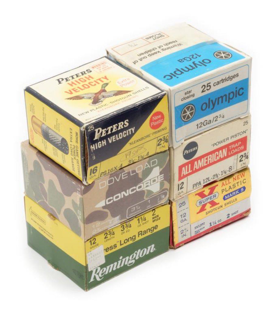 A shotgun shooters lot of 12 gauge ammunition. The lot consists of approximately 144 rounds of 12 gauge shot shells, new in the box from manufacturers such as Peters, Remington and Winchester among others. Three boxes indicate #2 shot, the rest are # 7 ½. Est.: $25-$50.