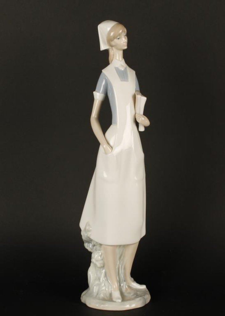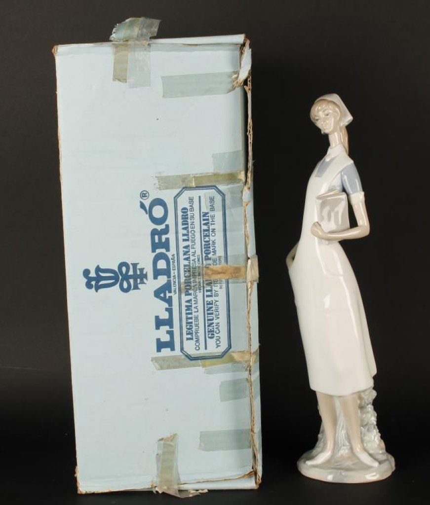 Lladro figure of nurse, approximately 14” in height, fine condition at time of description; in factory cardboard box. Est.: $125-$250.